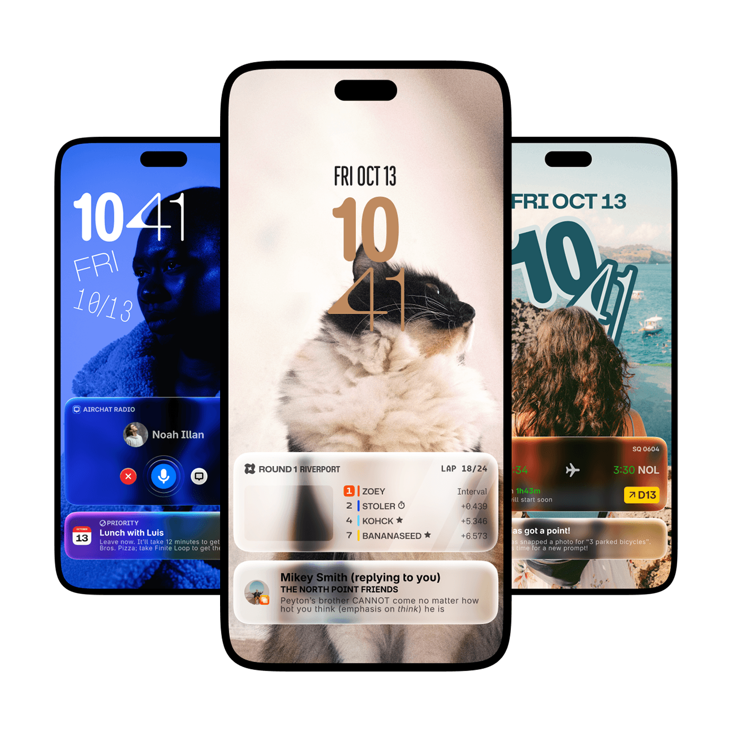 The Lock Screen features new playful clock options that adapts to your wallpaper.