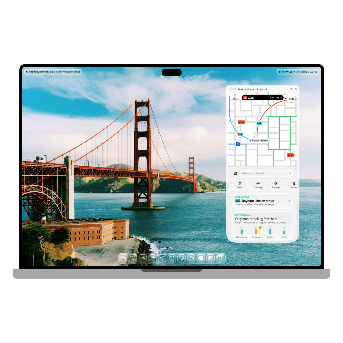 Phone Mirror makes it easy to see and control your phone screen on your computer or tablet. With Hyperphone and Hyperbook or Hypertop, you'll even get notifications and see Live Updates in Dynamic View or the menu bar.