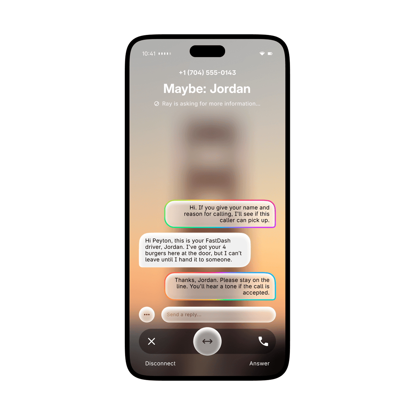 With Call Screening, Ray automatically picks up the phone and asks the caller for their name and reason for calling. You can have Ray reply to them as well, and you can stay behind the screen for as long as you want until you're ready to pick up.