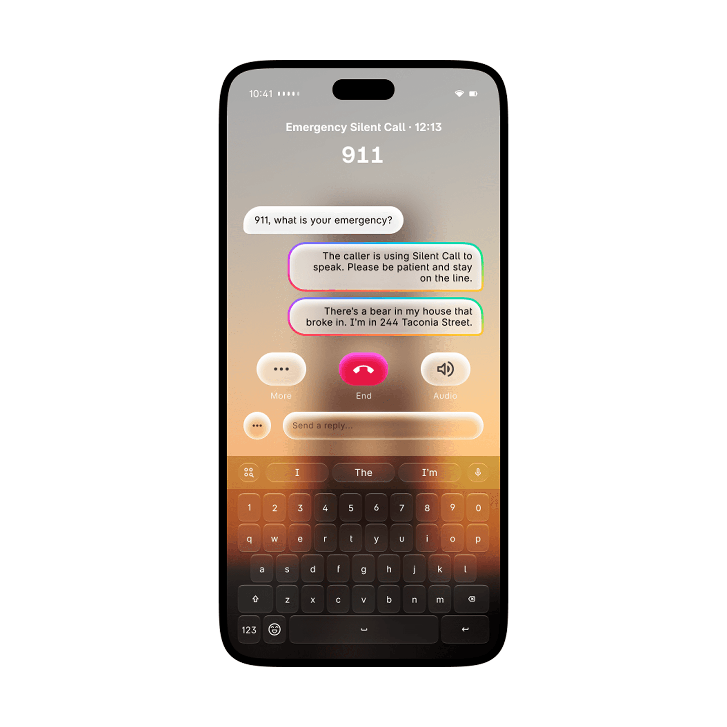Silent Call makes communicating with Emergency Services easier than ever. Staying completely silent, you can type quick responses to Emergency Services. With the power of Ray, your message can be extended into a full sentence, so “bear in house, can’t get out” turn into “There’s a bear in my house and I can’t get out.”